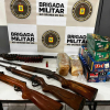 Foram apreendidas quatro armas, 33 munições e mais de 2,5 quilos de drogas