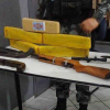 Também houve apreensão de cinco tijolos de maconha, armas e munições