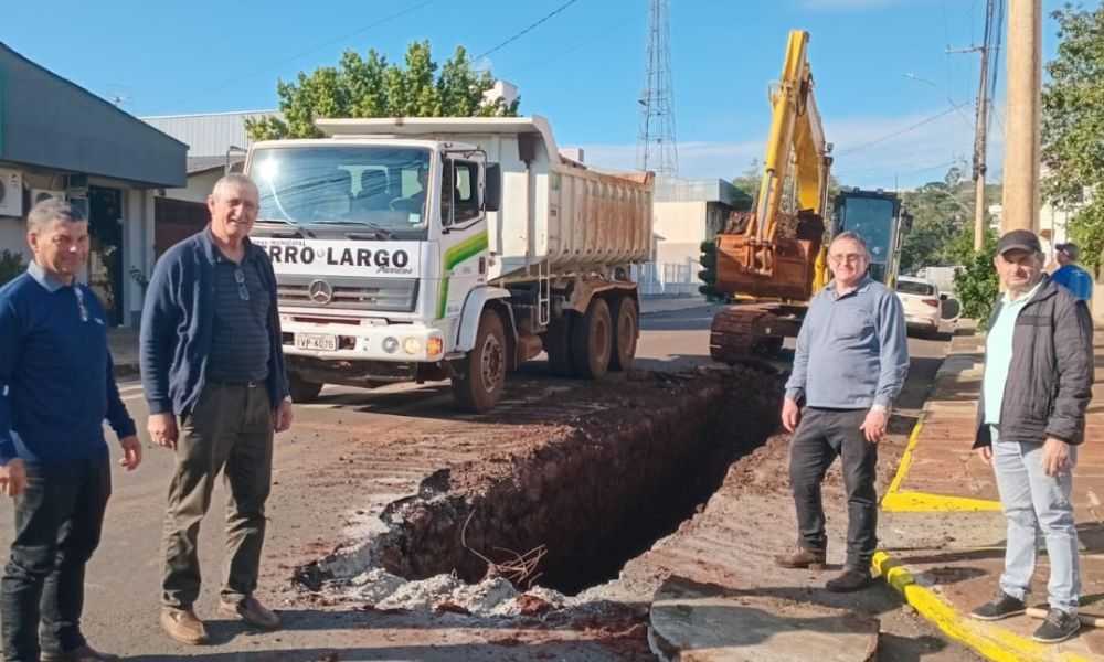 A Secretaria de Obras de Cerro Largo iniciou na manhã de quarta-feira (06/08) uma importante intervenção na rua Senador Pinheiro Machado: a ampliação da tubulação pluvial que corta a via.