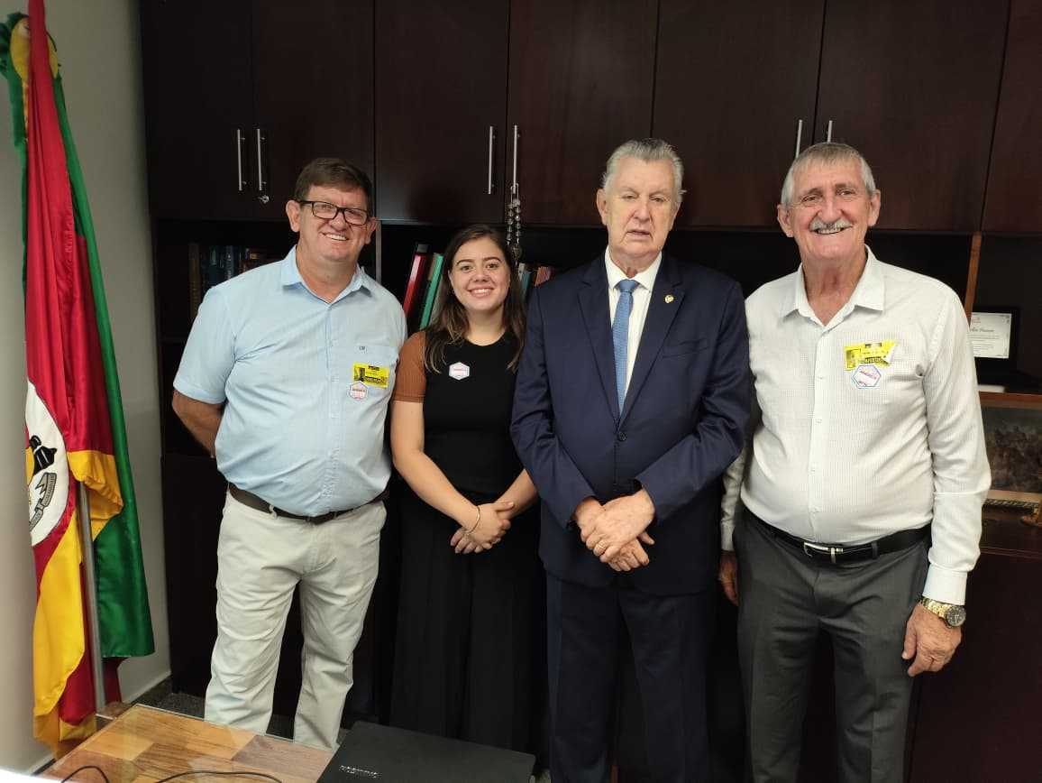 A primeira visita foi no gabinete do senador Luis Carlos Heinze, onde foi protocolada solicitação de recursos e já houve a confirmação de R$ 200.000,00 para investimento em uma patrulha agrícola, fortalecendo o apoio aos nossos produtores rurais.