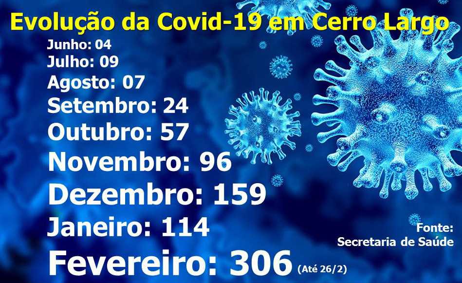 Encerrados os 26 dias úteis do mês, Cerro Largo teve nada menos que 306 novos casos de Covid-19, apenas em fevereiro.