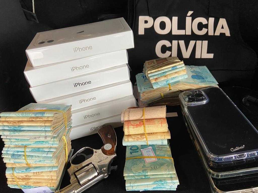 Foram apreendidos armas, drogas, celulares e um carro utilizado no roubo.