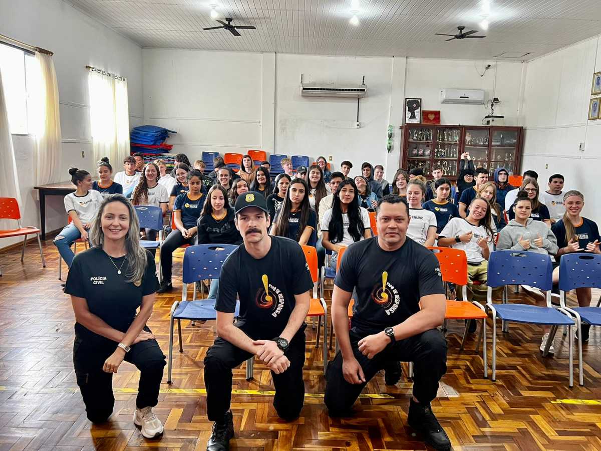 A Polícia Civil, por meio da Delegacia de Polícia de Santo Antônio das Missões (27ª DPRI), realizou nesta quarta-feira (25/10) o Papo de Responsa na Escola Estadual Érico Veríssimo, na cidade de Roque Gonzales.