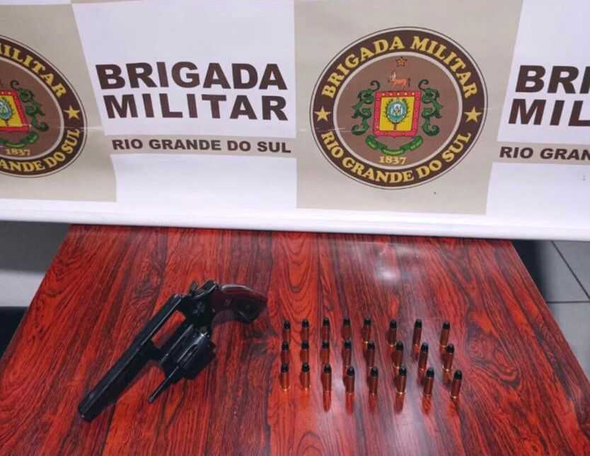 Na ocasião foii abordado um veículo HB 20. Em busca veicular foi localizado, em compartimento de uma mochila, um revólver calibre 38, marca Taurus e, em outro compartimento da mochila, estavam 24 munições calibre 38 marca CBC.