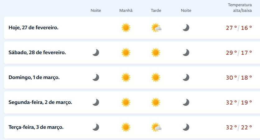 À tarde, o tempo permanece estável e a temperatura volta a subir de forma gradual, garantindo sensação agradável. O aquecimento tende a ser mais expressivo nas regiões próximas à fronteira com a Argentina.
