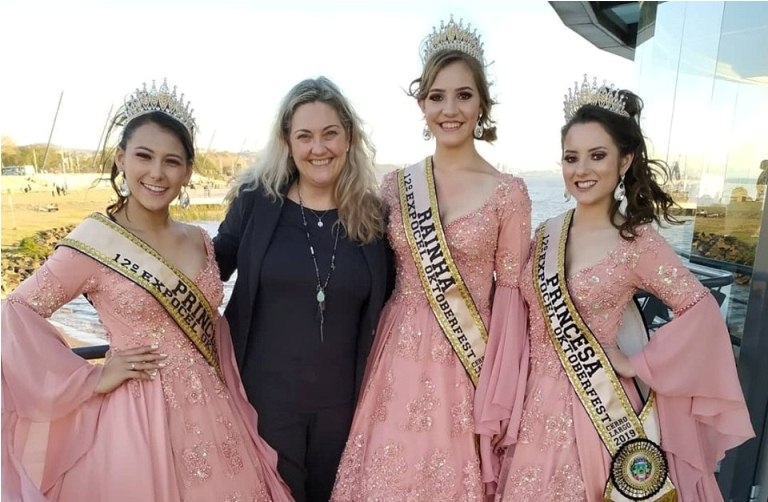 Fazendo a divulgação da 12ª Expocel / Oktoberfest em Porto Alegre, as Soberanas do evento encontraram na terça-feira (24/9), no POA 360 Gastrobar, às margens do rio Guaíba, a cerro-larguense Joice Cristine Horn Adams, que atua como relações públicas para a empresa que administra o restaurante.