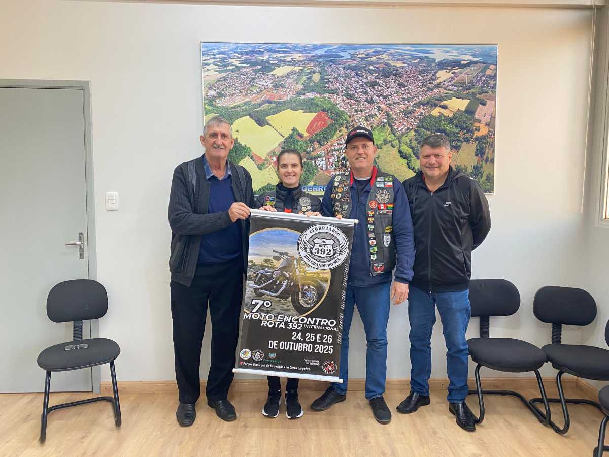 Na manhã de segunda-feira (23/06), representantes da diretoria do Moto Clube Rota 392 foram recepcionados pelo prefeito Pedro Butzen, em reunião que contou com a presença, também, do secretário Municipal de Indústria, Comércio e Turismo, Edson Santos.