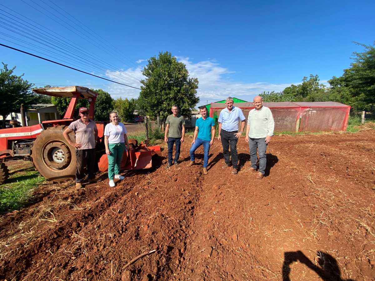 Na ocasião se fizeram presentes o prefeito Pedro Butzen, o vice-prefeito Ambrósio Ten Caten, o secretário da Agricultura Charles Scherer, o engenheiro agrônomo Fábio Schneider, representando a APAE, coordenadora Pedagógica Lisângela E. Mattos e o agricultor Prudêncio Scherer.
