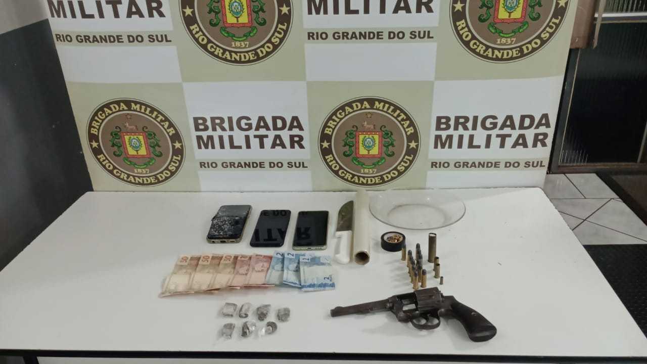 Em cima de um armário, foram encontradas mais quatro cápsulas de munições. E em cima de uma mesa, encontrado material para embalar drogas.