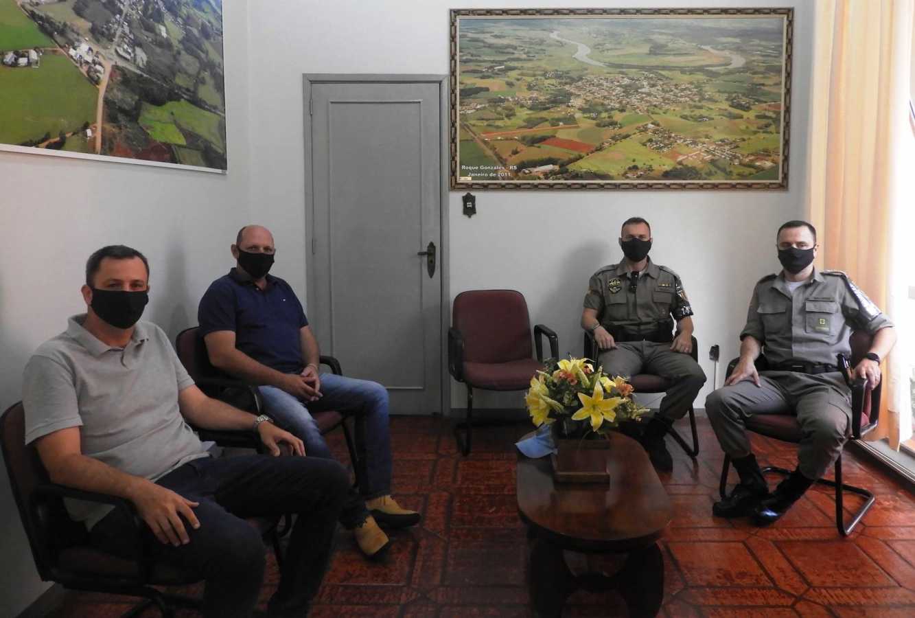 Ontem (10/2), o Poder Executivo de Roque Gonzales reuniu-se com o major Brum, do 14° BPM de São Luiz Gonzaga, e com o tenente Braga, da Brigada Militar de Roque Gonzales, visando o planejamento de ações de segurança no município, em especial no feriadão de carnaval junto à Prainha.