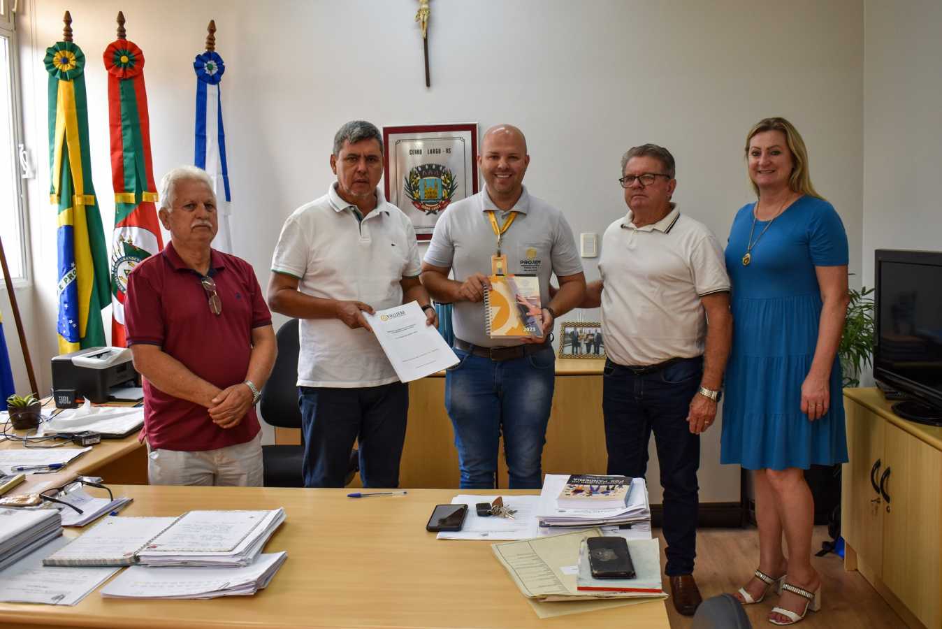 Estiveram presentes no ato, o sócio proprietário da PROJEM (empresa vencedora da licitação), Jacson Ehrig, o prefeito Paulo Kipper de Almeida, o vice-prefeito Júlio Ledur, a secretária de Educação Neiva Fogolari e o secretário de Obras Elmar Greff.
