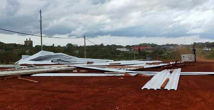 Em alguns bairros parecia ser um vento e chuva normais, porém um forte vento - "que parecia um tornado", segundo relatou uma testemunha do fato - atingiu uma obra localizada ao lado da rodovia BR 285, que estava, conforme informações preliminares, na colocação da cobertura. O forte vento atingiu somente o galpão em construção, onde grande parte do material foi levado pelo vento e dois operários foram lançados ao ares.