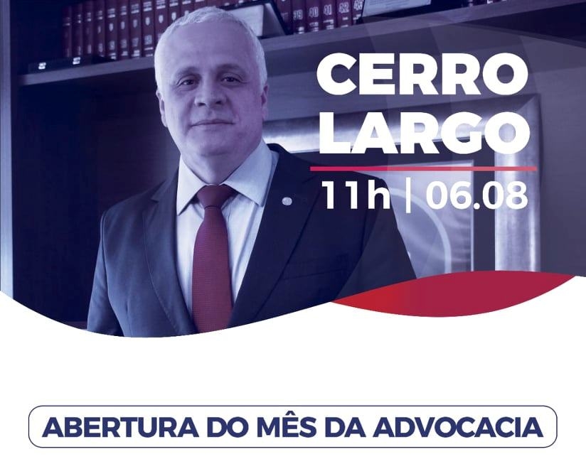 O presidente da OAB/RS, Ricardo Breier, estará em Cerro Largo na próxima terça-feira, dia 6, a partir das 11h, na auditório do Campus Seminário da UFFS-Cerro Largo.