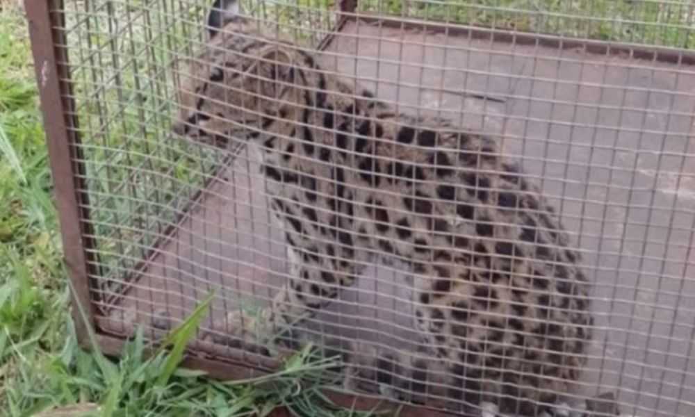 Após o resgate, o felino foi acondicionado em uma gaiola apropriada e deverá passar por avaliação antes do destino final.