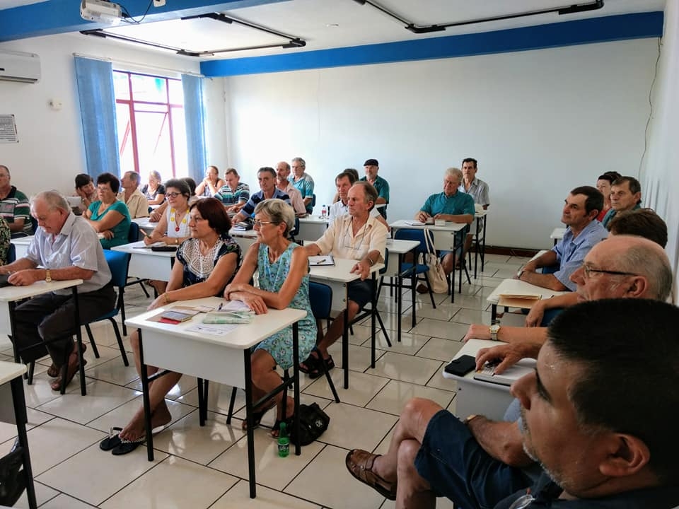 Segunda-feira (28), realizou-se nas dependências da URI-Cerro Largo, a reunião mensal da Associação Municipal da Terceira Idade de Cerro Largo (Regional 6), sob a coordenação do presidente José Léo Rockenbach e do presidente da FECTIRGS Afonso Kotz.