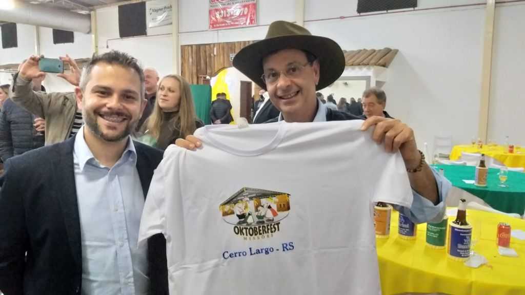 No encontro que teve como o ministro Gilson Machado Neto, Bernardo aproveitou para presenteá-lo com um DVD institucional de Cerro Largo e uma camiseta da Oktoberfest Missões.