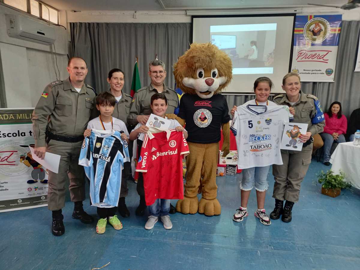 Neste ano, em Cerro Largo, concluiram o Proerd 49 alunos, dos quintos anos da Escola Estadual Sargento Silvio Delmar Holembach e da Escola Municipal Dr. Otto Flach (turmas 51 e 52), tendo como instrutora a soldado Reni Inês Lermen.
