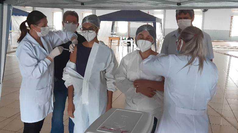 As 159 primeiras doses recebidas - da vacina CoronaVac/Butantan - foram destinadas à profissionais da saúde e idosos residentes em casas de longa permanência (asilos). E coube à médica Iasmin Queiroz e à enfermeira Ivânia Zucolotto a honra de serem as primeiras vacinadas no município.