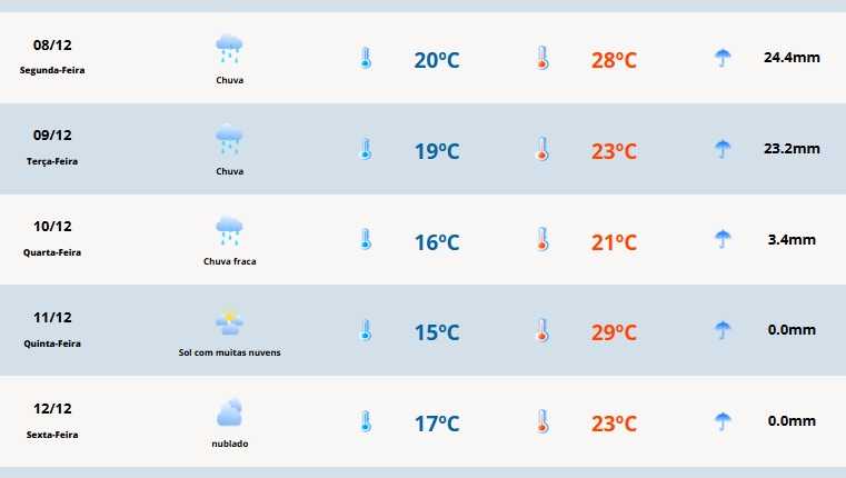 Nesta segunda-feira, em Cerro Largo as temperaturas oscilam entre 20°C e 28°C.