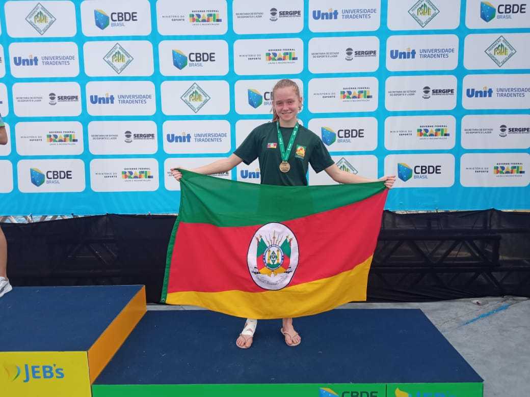 A atleta cerro-larguense Fernanda Sandri Schneider, de 15 anos, conquistou na manhã de ontem (21/5), a medalha de bronze (3º lugar) na prova de 2.000 metros com obstáculos, na categoria Sub-18 dos Jogos Escolares Brasileiros, que estão sendo disputados em Aracaju, capital de Sergipe. O evento esportivo reuniu mais de 2.000 atletas de todo o país, em um dos maiores campeonatos escolares do Brasil.