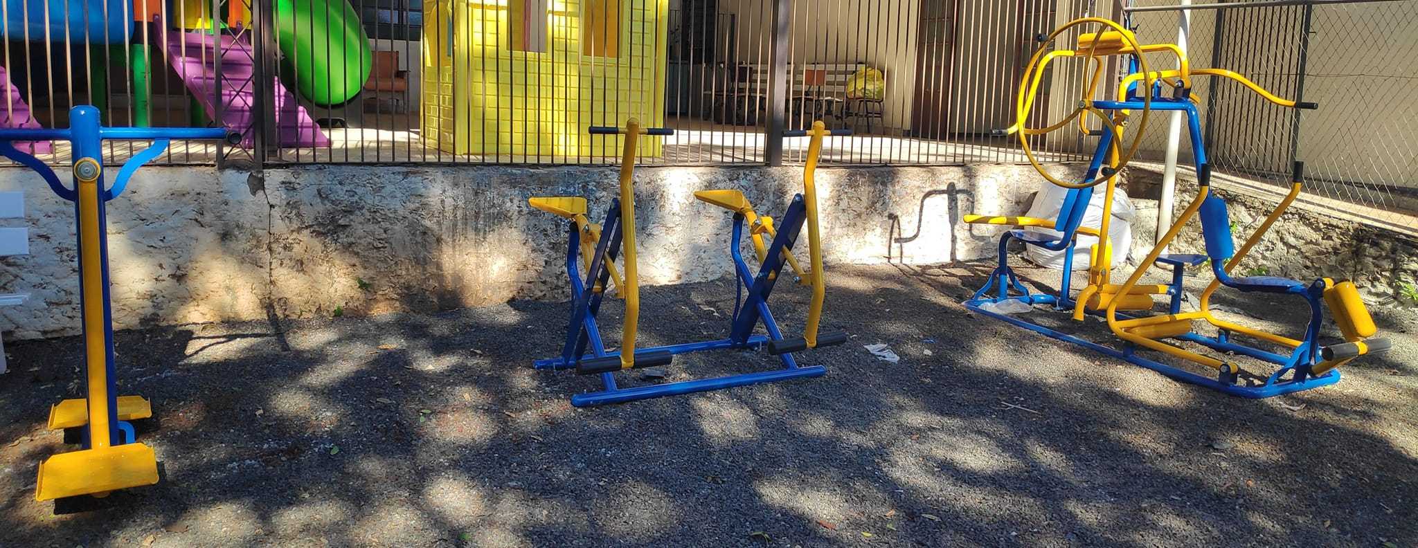 Os equipamentos de academia ao ar livre foram adquiridos com o objetivo de estimular o desenvolvimento de habilidades motoras e da capacidade cognitiva, além de fortalecer relações de sociabilidade, interação e cooperação.