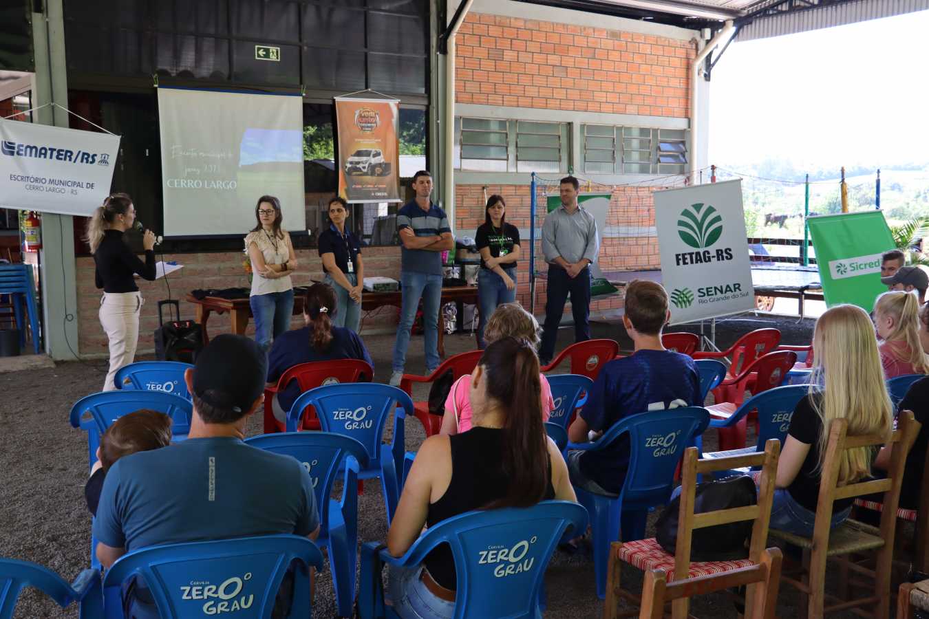 Entre as atividades da programação, a assistente técnica regional da Emater Lisete Primaz e a extensionista do escritório municipal Carla Kiss abordaram o tema da sucessão rural e apresentaram o panorama da juventude no meio rural de Cerro Largo, destacando seu empreendedorismo e busca por conhecimento.