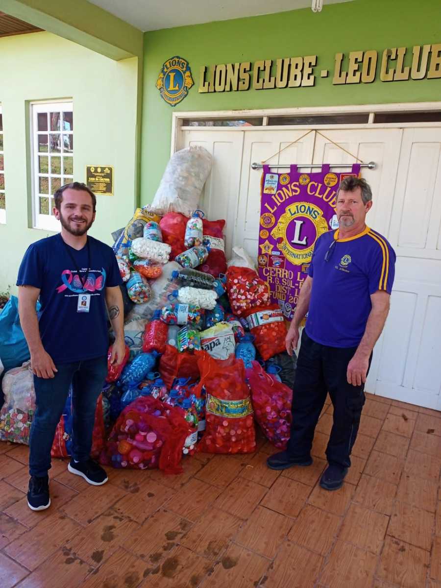 Na quarta-feira (20/07), a Associação de Apoio a Pessoas com Câncer (Aapecan), Unidade Ijuí e Extensão Santa Rosa esteve em Cerro Largo para receber a doação de 400 quilos de tampinhas doados pelo Lions Clube da cidade.