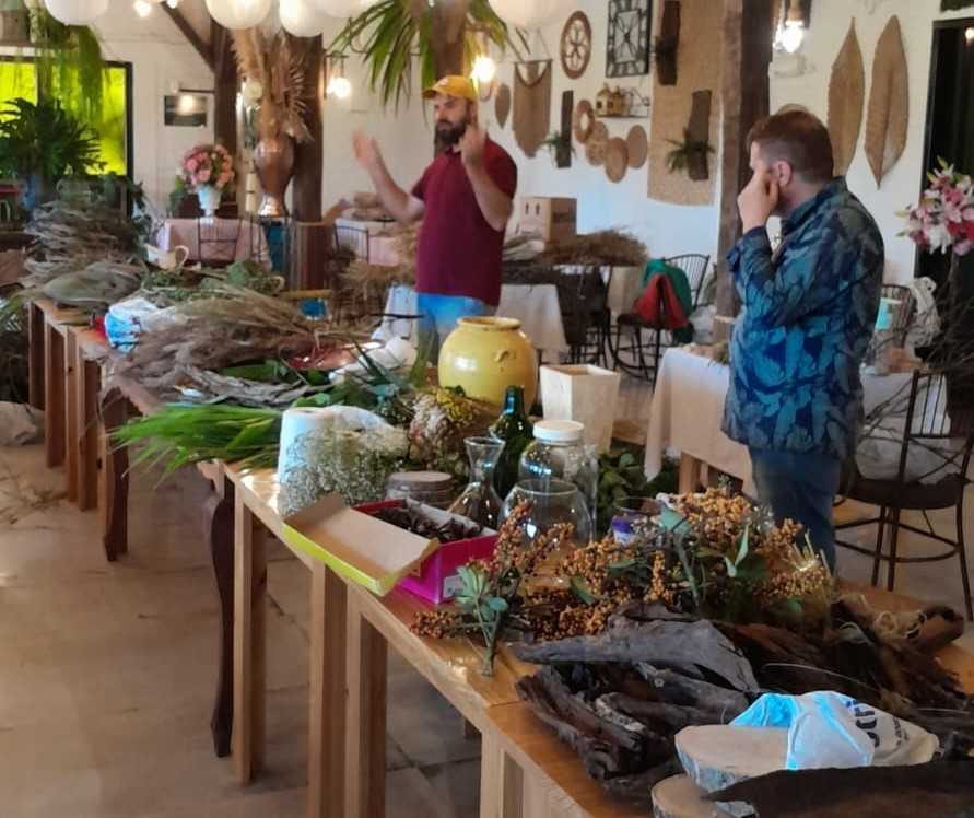 A oficina de artesanato foi conduzida pelos proprietários João Ludwig e Almir Paulo Braun, que abordaram o desenvolvimento de diversas opções de artesanato rural a partir do que está disponível no meio rural da região, valorizando a agrobiodiversidade local. Folhas, cascas e sementes foram transformadas em arranjos e peças com motivos natalinos.