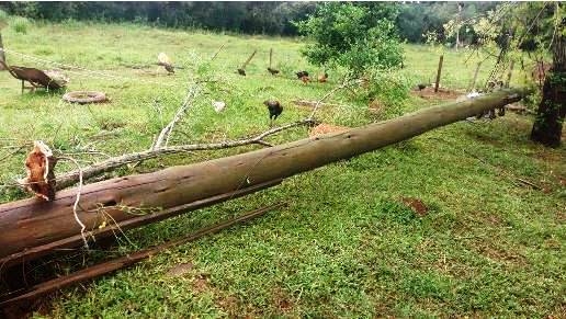 As fortes rajadas de vento também provocaram problemas no fornecimento de energia elétrica em Linha Dona Otília, deixando aquela localidade sem energia elétrica.