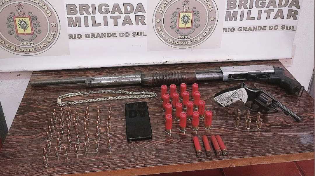 Quando as guarnições chegaram no local, por volta das 10h de quinta-feira (30/11), foi visualizado um indivíduo de 31 anos de idade, que ao notar a presença da polícia militar saiu correndo para os fundos da residência, com uma arma de fogo longa na mão, sendo acompanhado e abordado, quando foi localizada com o mesmo uma espingarda calibre 12, marca Boito, municiada.