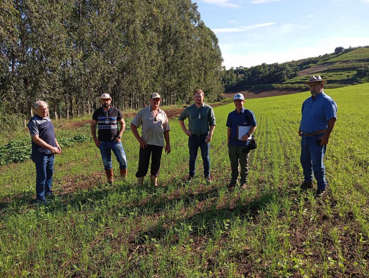 Doze propriedades dos municípios de São José do Inhacorá, Três de Maio e Roque Gonzales, que receberam sementes de forrageiras de inverno por intermédio do Programa, via Sindicato dos Trabalhadores Rurais, foram visitadas pelos agrônomos Jonas Wesz e Douglas Velho, do Departamento de Agricultura e Pecuária Familiar (Dafa) da SDR, pelo representante do escritório central da Emater/RS-Ascar, Jaime Ries, pelo pesquisador da Embrapa Cristiano Tomasi, pelo assistente técnico regional da Emater Jorge Lunardi e pelos extensionistas dos escritórios municipais, assim como pelo supervisor microrregional da Emater Joney Braun e assistente técnico regional Gilmar Francisco Vione.