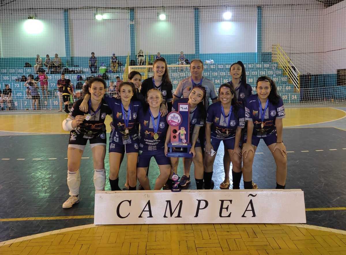 Ontem (19/12), a equipe da União Roque-gonzalense de Futsal Feminino (URFF), com uma grande campanha de cinco vitórias e um empate, 25 gols marcados e quatro sofridos, conquistou o titulo de campeãs invictas do Torneio de Nova Esperança do Sul.