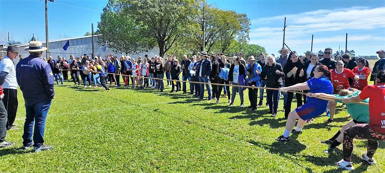 A fase municipal dos Jogos Rurais Sol a Sol reuniu centenas de pessoas na Linha Santa Fé neste domingo (4/9), em Cerro Largo. O evento promovido pela Emater/RS-Ascar, Prefeitura e comunidade anfitriã é uma forma de oportunizar às famílias rurais um momento de integração comunitária e lazer, despertando o espírito participativo e solidário. Além disso, o evento já resultou em centenas de obras comunitárias em toda a região desde que iniciou, há quatro décadas.