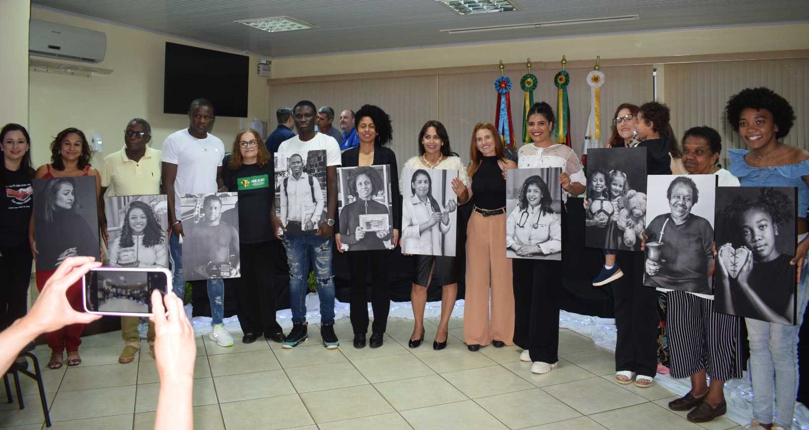 Ainda, a fotógrafa e idealizadora da exposição recebeu um quadro de Congratulação e Reconhecimento pelo projeto e pela beleza com que soube retratar os modelos. Em sua fala, Gabriela agradeceu a homenagem e enfatizou a importância do projeto, que retratou os negros inseridos em diferentes esferas da sociedade, em Cerro Largo.