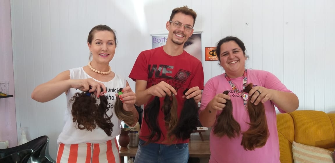 No último dia 14, a Secretaria Municipal do Trabalho e Assistência Social, Rotaract Club e Liga de Combate ao Câncer receberam 18 mechas de cabelos, entregues pelo Salão da Carla e pelo Salão Novo Visual.