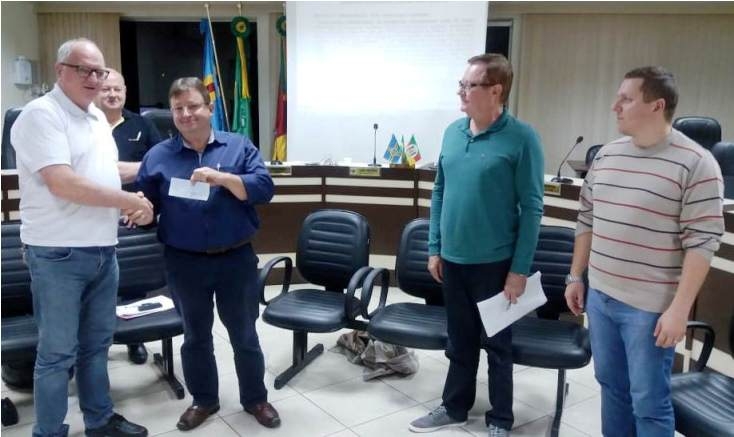 A entrega foi feita pelo presidente do Rotary, empresário Elário Schaurich, ao tesoureiro Edson Bolzan e ao presidente Arsênio Heckler.