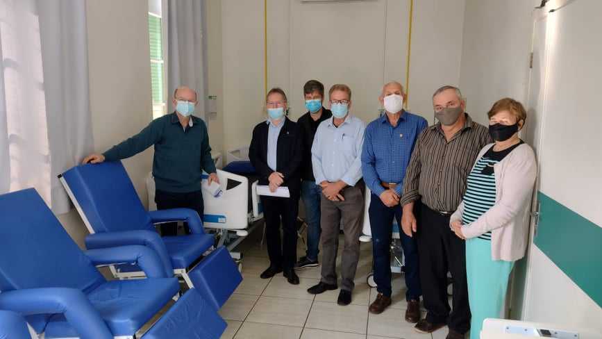 Pela Associação Hospitalar de Caridade Serro Azul (AHCASA), recepcionaram o deputado o presidente da instituição, Ivo Aloísio Konzen; o diretor Carmo Angst; o diretor administrativo, Ademir Hartmann; e a médica coordenadora da Emergência, Heloise Fabian Silvestre, representando o corpo clínico do hospital.