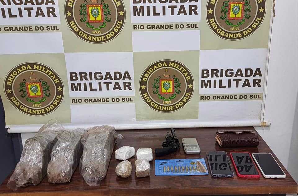 No veículo foi encontrada nos cartões das portas traseiras, grande quantidade de substâncias com característica de maconha, crack e cocaína, inclusive um revólver calibre 32, 10 munições intactas e uma balança de precisão.