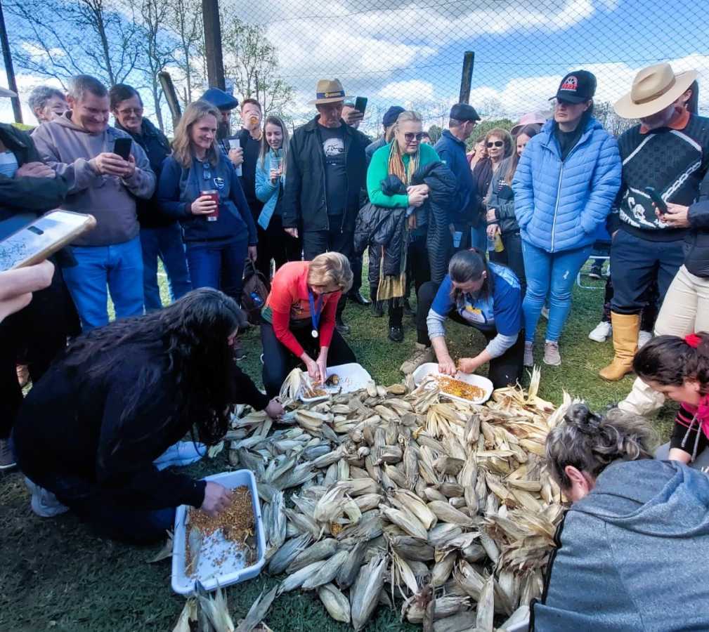 Prova da debulha de milho, na São Francisco (Foto: Emater)
