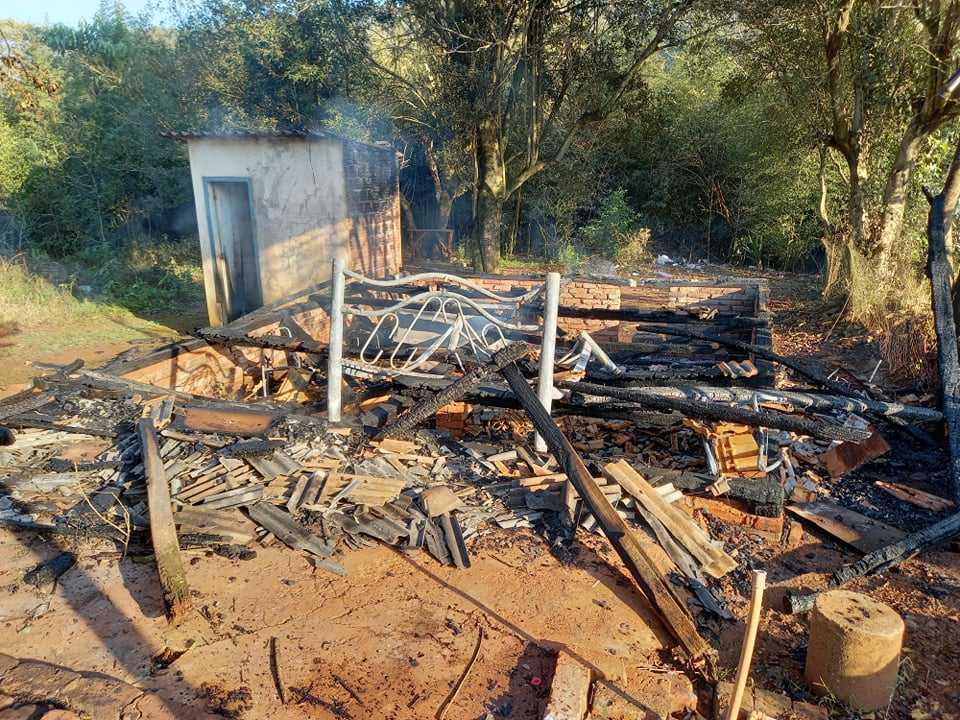 Ninguém estava no local quando o sinistro iniciou, e o fogo consumiu rapidamente a residência de madeira.
