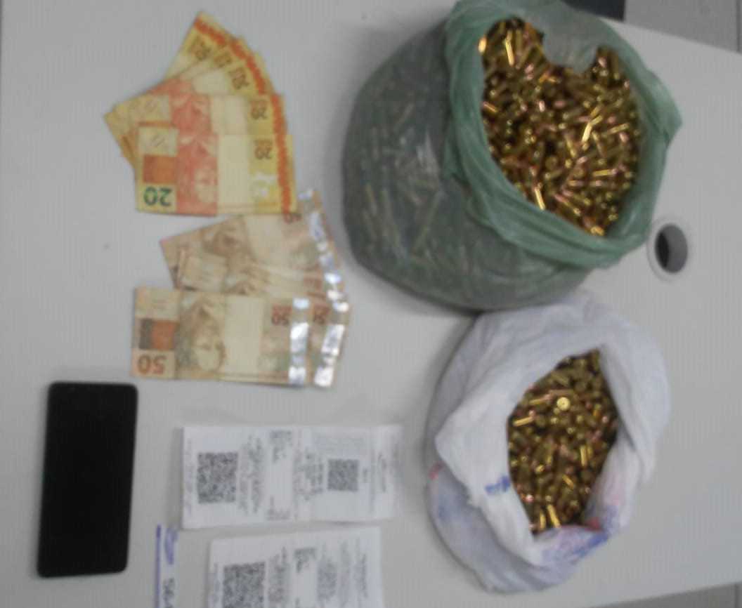Foram apreendidos além da munição (2.501 cartulhos de calibre 9mm, intactos, marca FLB, de origem argentina), o valor de R$ 400,00 em dinheiro, um celular e a mala onde estava acondicionada a munição.