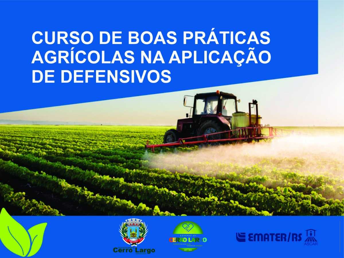 A Secretaria da Agricultura e Expansão Econômica e a Emater/RS-Ascar, estarão promovendo nos dias 26 e 27 de março o curso de Boas Práticas Agrícolas na Aplicação de Defensivos, que é exigido aos agricultores no momento da compra e da aplicação de Herbicidas Hormonais.