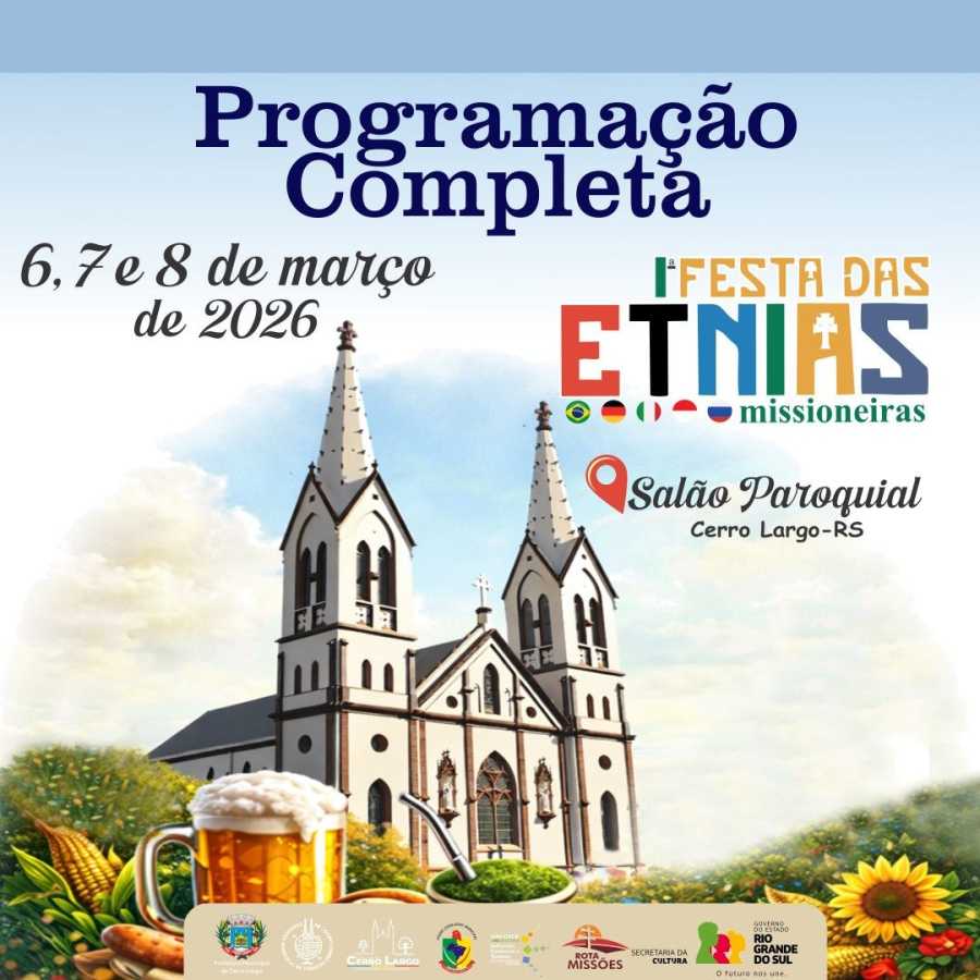 Fazendo parte da programação oficial dos 400 anos das Missões Jesuíticas Guaranis, a 1ª Festa das Etnias Missioneiras acontece em Cerro Largo no próximo fim de semana, de 6 a 8 de março.