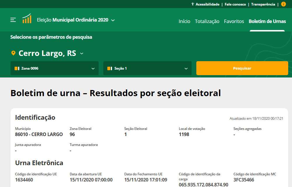 Já estão disponíveis, no site do TSE, os resultados detalhados das eleições municipais de 2020.