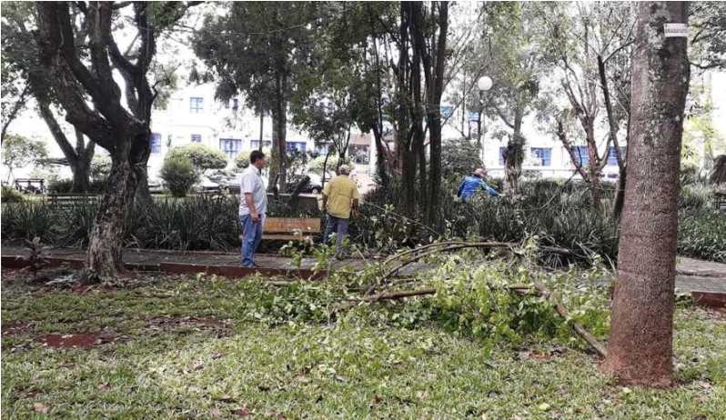 A Administração Municipal de Cerro Largo está realizando um projeto de revitalização da Praça da Matriz, que consiste na substituição e podas de árvores mais antigas por mudas de árvores ornamentais.