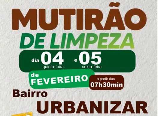 Os moradores do bairro Urbanizar devem colaborar com a iniciativa, descartando entulhos e materiais inservíveis, que podem ser colocados em frente as suas casas para o recolhimento.