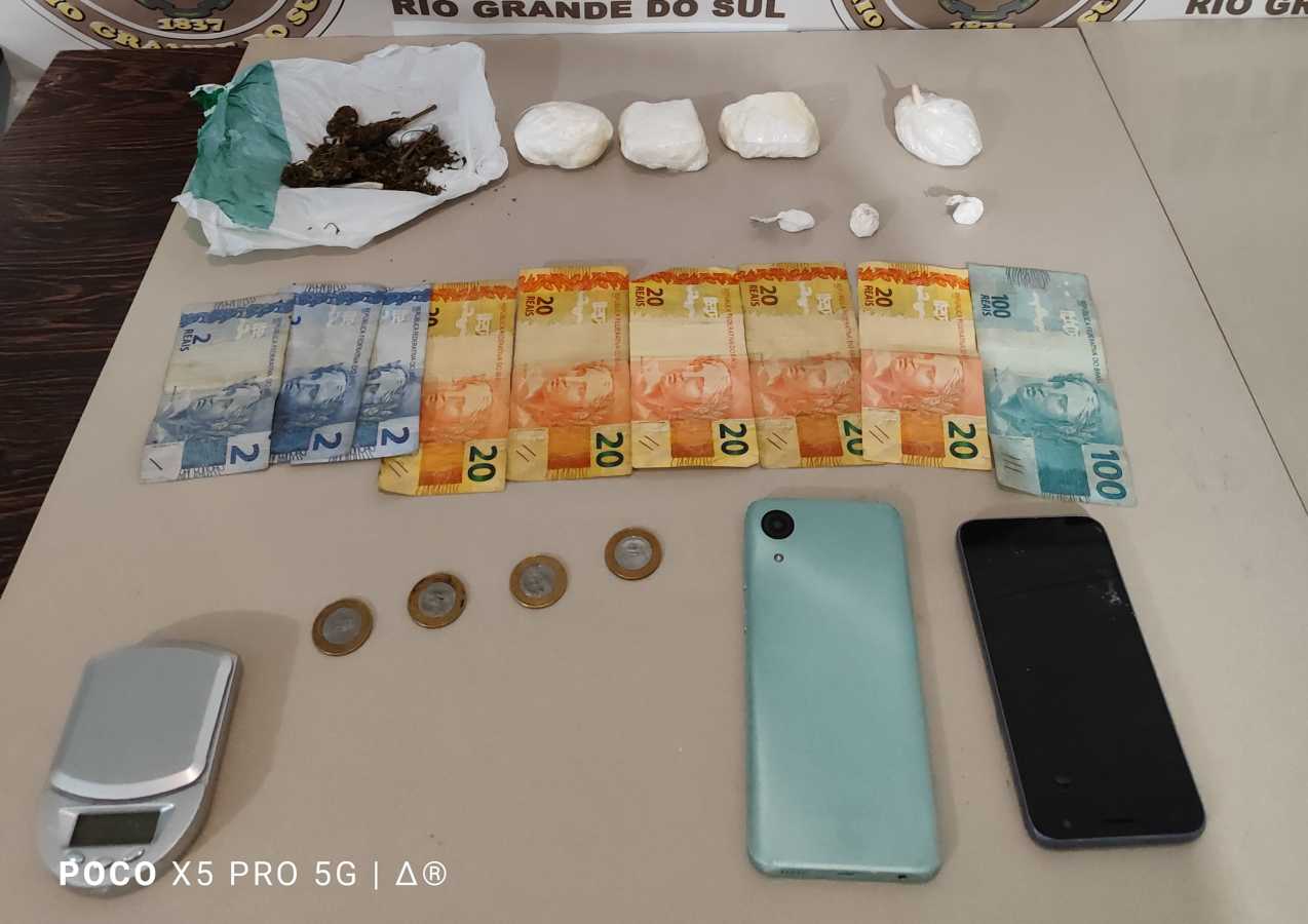 Foram apreendidos 176 gramas de cocaína, 10 gramas de maconha, 01 balança de precisão, 02 celulares, R$ 210 em dinheiro, totalizando um prejuízo estimado de cerca de 20 mil reais para a organização criminosa.