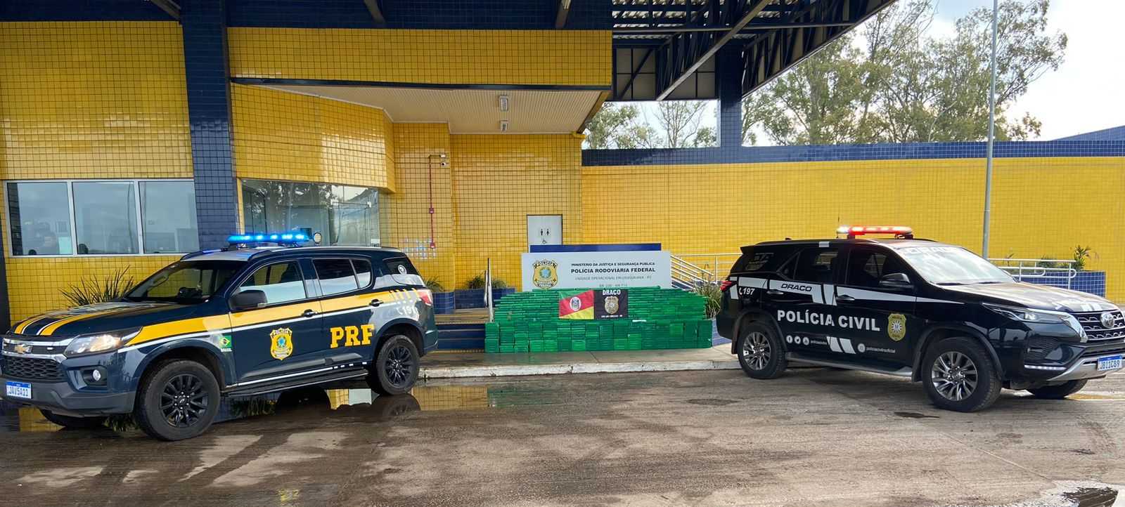 Na tarde de quinta-feira (21/09), agentes da DRACO de São Luiz Gonzaga e da Polícia Rodoviária Federal realizaram uma ação conjunta que resultou na apreensão de quase meia tonelada de cocaína (430 kg), em Uruguaiana, bem como na prisão de sete criminosos e na apreensão de três veículos vinculados à traficância de drogas.