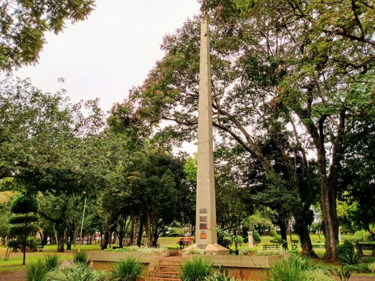 Monumento em concreto, em forma de um obelisco, marca os 150 anos da imigração alemã no Rio Grande do Sul, data que foi comemorada em 25 de julho de 1974.