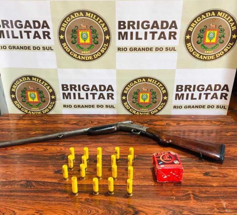 O mesmo entregou para a guarnição a espigarda e 18 munições calibre 20 intactas e um cartucho do mesmo calibre deflarado de origem estrangeira (da Argentina).